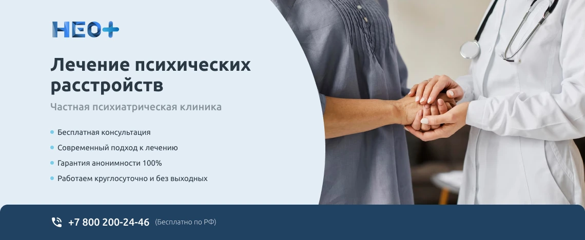 Записаться на прием к врачу-психиатру можно на официальном сайте клиники «НеоПлюс» в Новопавловске или по телефону ☎️ +7 (800) 200-24-46. Звоните нам, не запускайте проблему. Мы знаем, как вернуть здоровье и покой в Вашу семью!